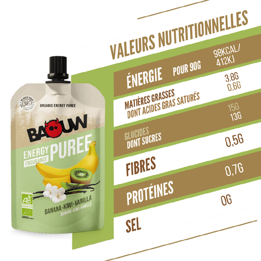 Purée Energétique BAOUW Bio Recette aux Fruits Banane/Kiwi/Vanille (90g)