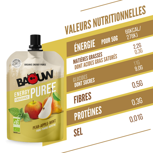 Purée Energétique BAOUW Bio Recette aux Fruits Poire/Pomme/Menthe (90g)