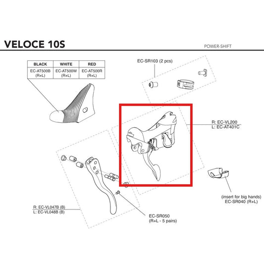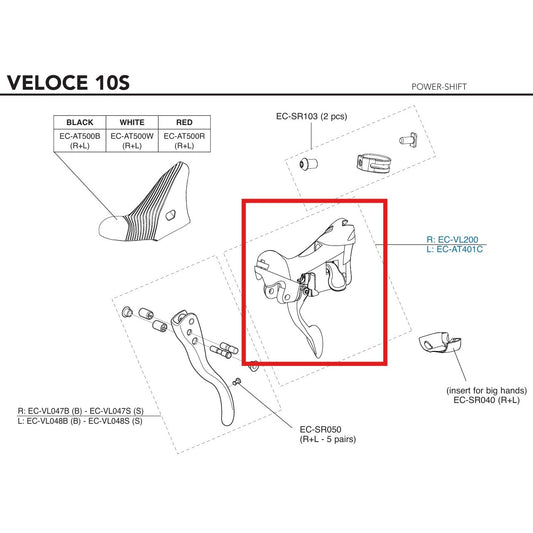 Corps de Manette Droite CAMPAGNOLO VELOCE 10V 2015 Frein sur Jante