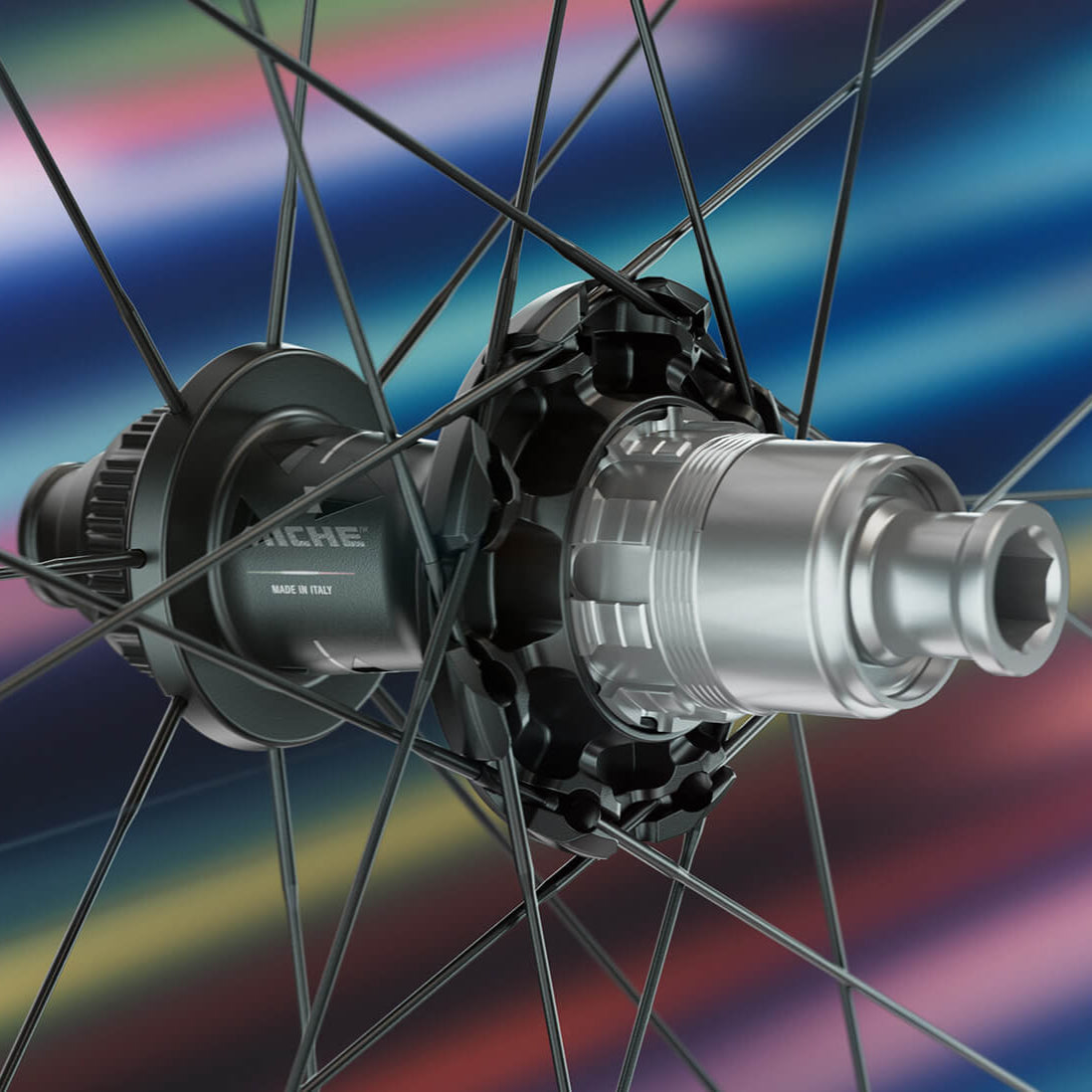 ► Technologie Miche RR-C (Racing Replica Ceramic), développée en collaboration avec CeramicSpeed : roulements doublement protégés et optimisés pour une fluidité et une durabilité exceptionnelles ;