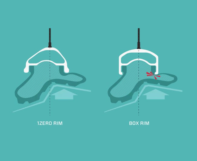 Le dessus de la jante à ailettes offre une surface lisse pour le pneu, réduisant ainsi les risques de crevaison par pincement après un choc rocheux ;