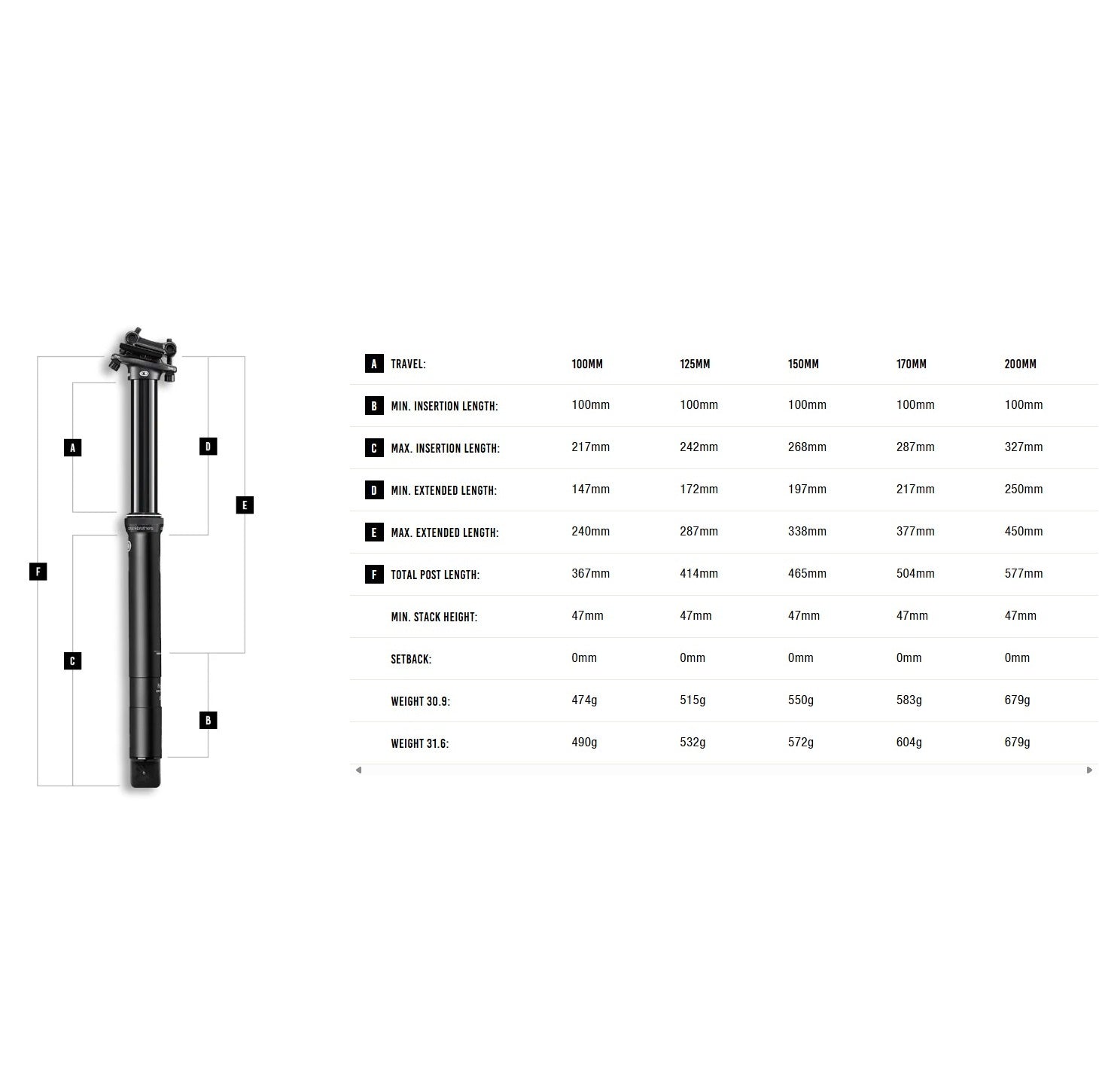 La conception en aluminium 7075 est légère et robuste. Le système bénéficie de joint haute qualité Trelleborg® Seal, des bagues exclusives Igus® LL d'une grande fluidité et d'un ensemble câble et gaine Jagwire®. La cartouche hydraulique IFP possède un fonctionnement doux et fluide (air et huile séparés), et vous permet de régler la hauteur selon vos besoins.