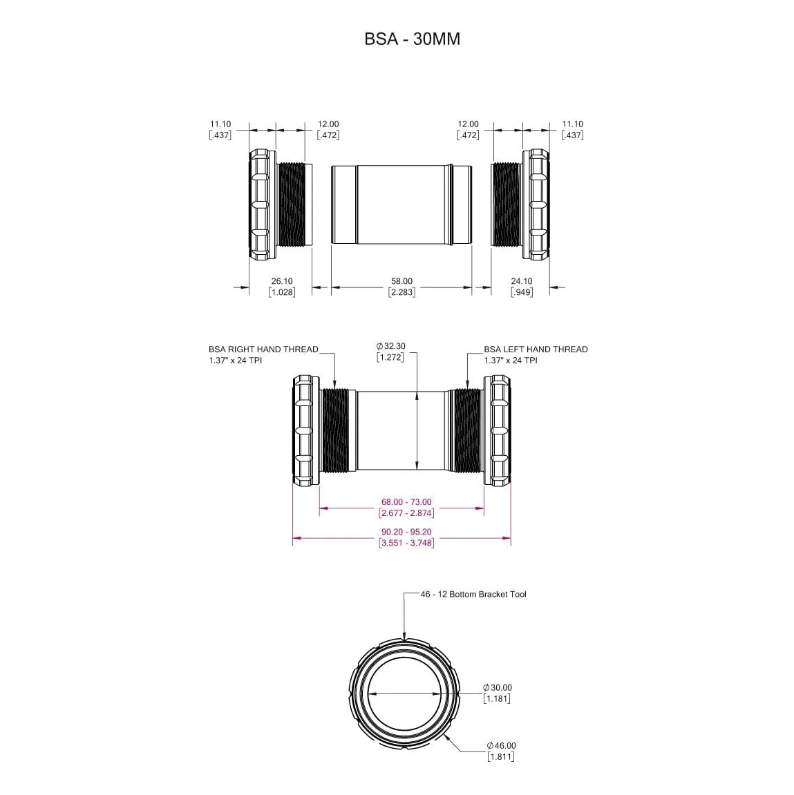 Boitier de Pédalier WOLFTOOTH BSA 30mm Ultraviolet Purple
