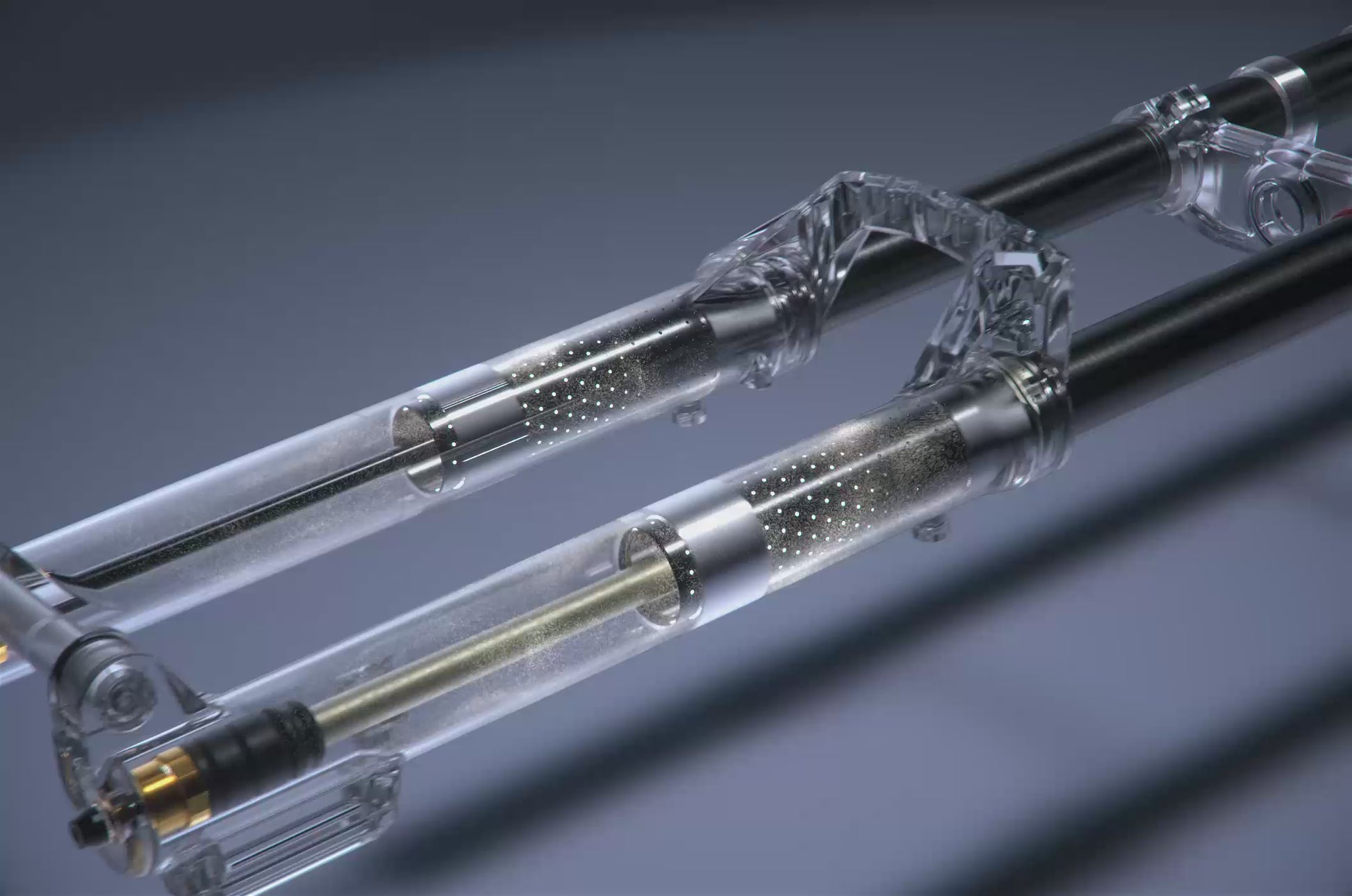 La cartouche Charger 3.2 RC2, dotée de réglages indépendants des compressions haute et basse vitesses, délivre un amortissement silencieux et précis. Les ButterCups réduisent jusqu’à 20 % des vibrations haute fréquence pour limiter la fatigue. La technologie ButterWagonTech assure une lubrification continue des bagues grâce à une matrice de micro-cavités, tandis que les joints anti-poussière SKF à faible adhérence maximisent la fluidité. Son châssis de 38 mm, optimisé pour la Coupe du monde de DH, garantit rigidité et précision sans déflexion excessive.