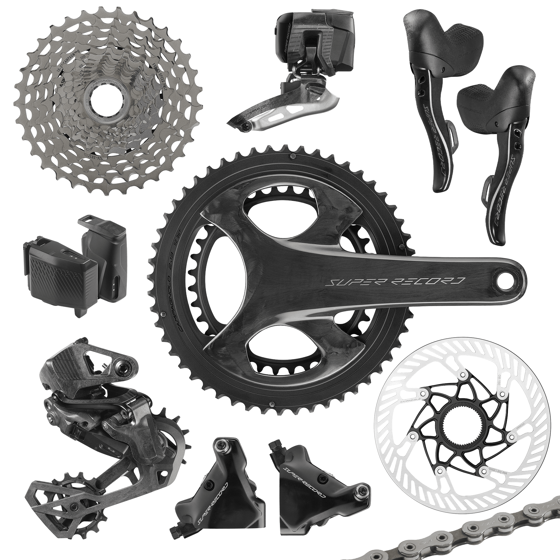 Le Super Record WRL 2x13V s’appuie sur des composants d’une qualité exceptionnelle. Les dérailleurs avant et arrière, dotés de moteurs haute précision, assurent des transitions ultra-rapides, tandis que les matériaux haut de gamme – fibre de carbone, alliages légers et titane – permettent un poids réduit sans compromis sur la rigidité. La cassette à 13 vitesses, combinée à une large sélection de plateaux, offre une polyvalence maximale pour affronter tous les terrains.
