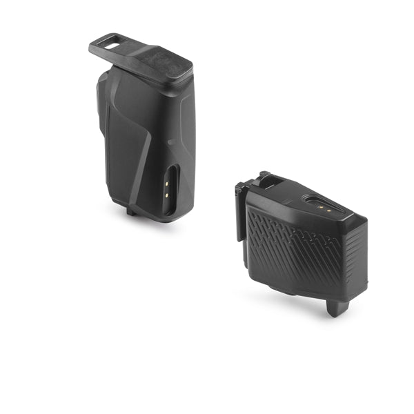 Batteries amovibles avec ports magnétiques Quick‑Snap, autonomie jusqu’à 750 km, recharge complète en 60 min, recharge d’urgence (~100 km) en 10 min, recharge USB‑C universelle.
