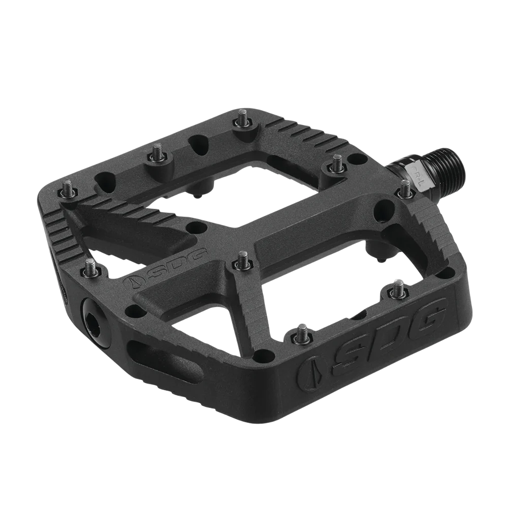 Les pédales plates SDG COMP Composite incarnent plus de 20 ans d'expertise en matière de composants de performance. Avec un design plat généreux de 110 x 105 mm, elles offrent une surface optimale pour les pieds, même les plus grands, et s'adaptent parfaitement aux chaussures modernes à semelles rigides.