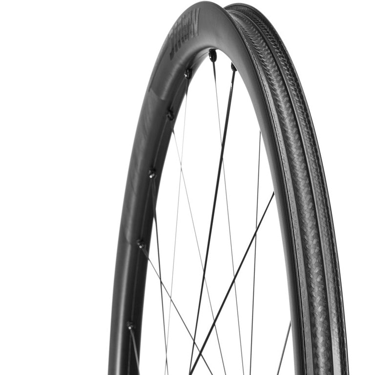 Avec sa jante en carbone ultra-légère de 32 mm, son profil NACA optimisé pour les freins à disque et ses rayons aérodynamiques brevetés, elle garantit des accélérations instantanées et une maniabilité exceptionnelle dans les ascensions les plus raides.