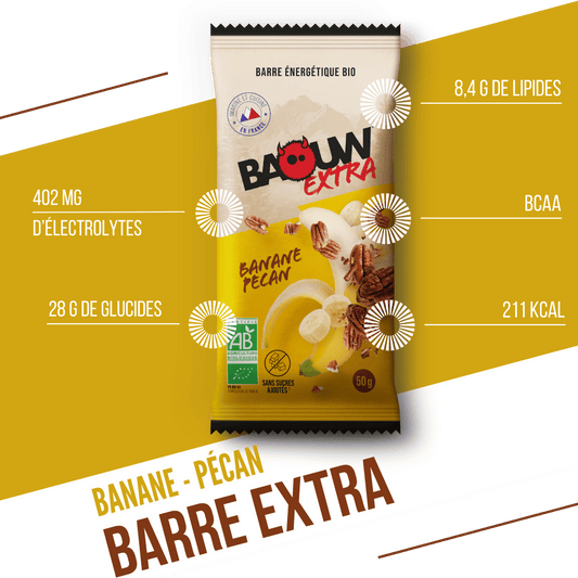 Barre Énergétique BAOUW BIO EXTRA Banane-Pécan (50g)