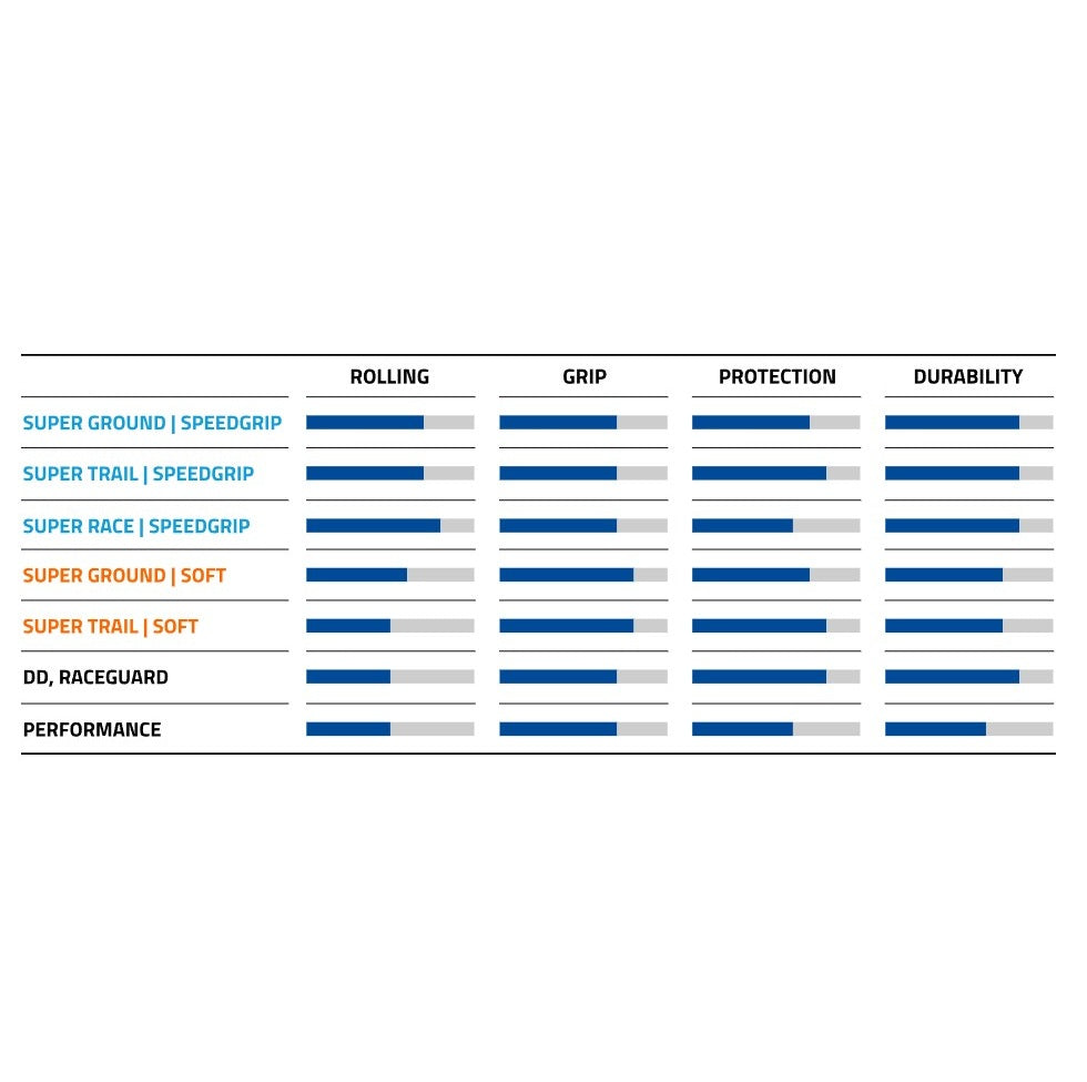 Son profil optimisé, avec d'épais crampons sur les côtés et de plus petits blocs au centre, procure une excellente accroche à l’accélération ainsi qu’au freinage, assurant contrôle et sérénité dans les sentiers difficiles.